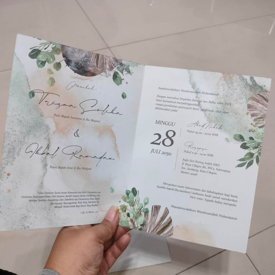 "Assalamualaikum, makasih mbak paket undangannya dah nyampe.. memuaskan.bgt layanan,cepat,murah meria..."